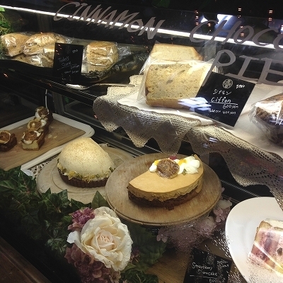 カフェにはおいしそうな自家製ケーキやマフィンが並んでます。