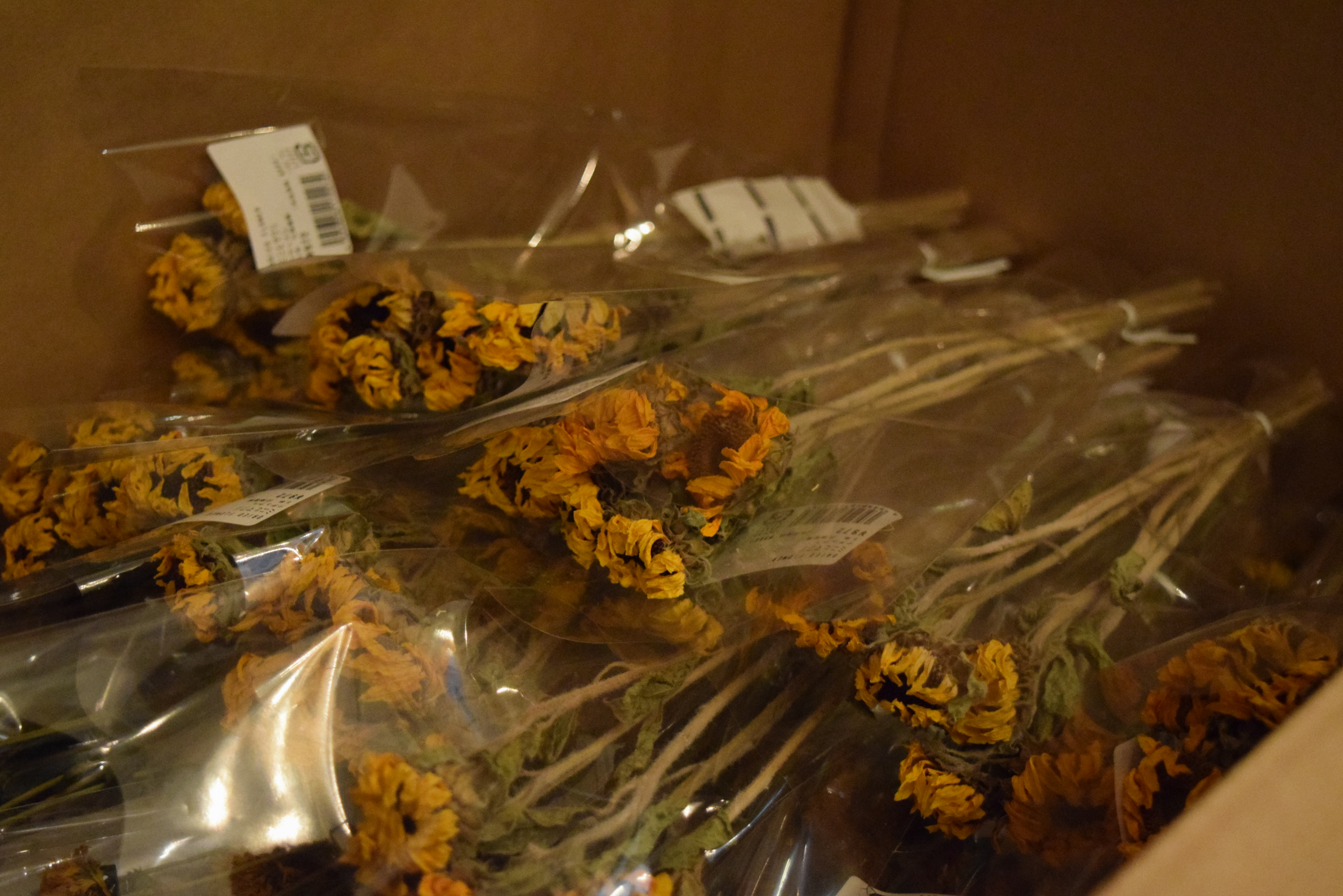 センタリア、ニゲラ、ヒマワリ、ミモザ、ペッパーベリー、